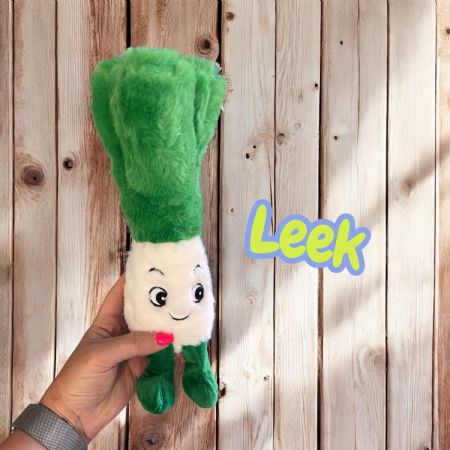A broccoli, radish & leek soft toy